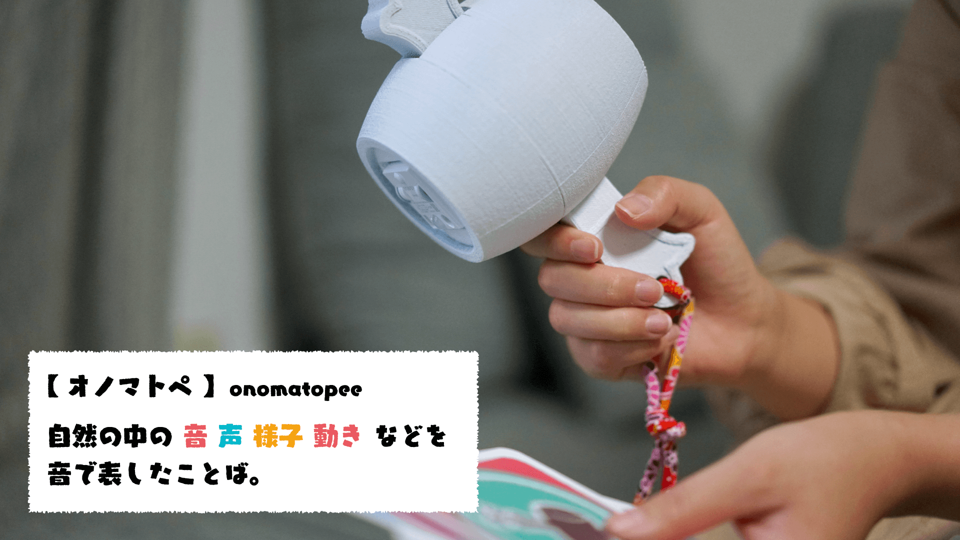 「オノマトン!」はそんな\\"オノマトペ\\" を 想像して、探して、遊ぶ、小槌型の知育玩具です。