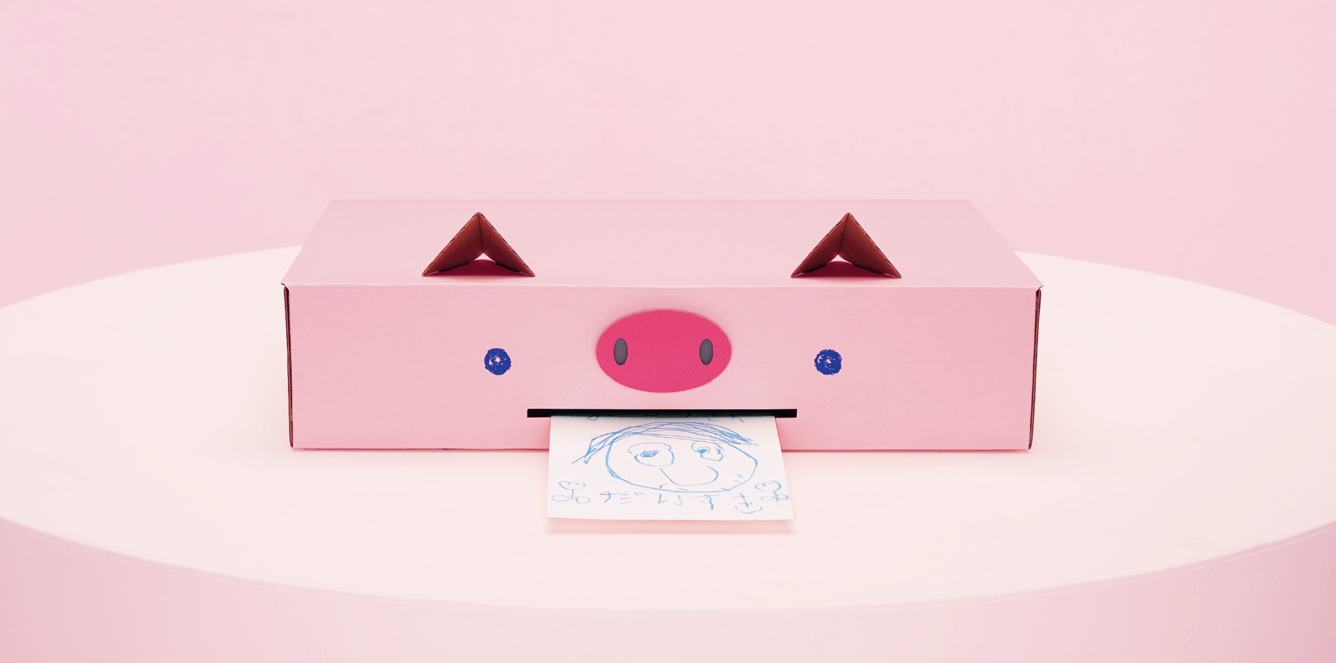 子どもが書いたお手紙を「ぶうびんポスト」へ入れると、スキャンし、データ化。送った日付の消印をつけてLINEに送ってくれる、ぶたさん型のポストです。