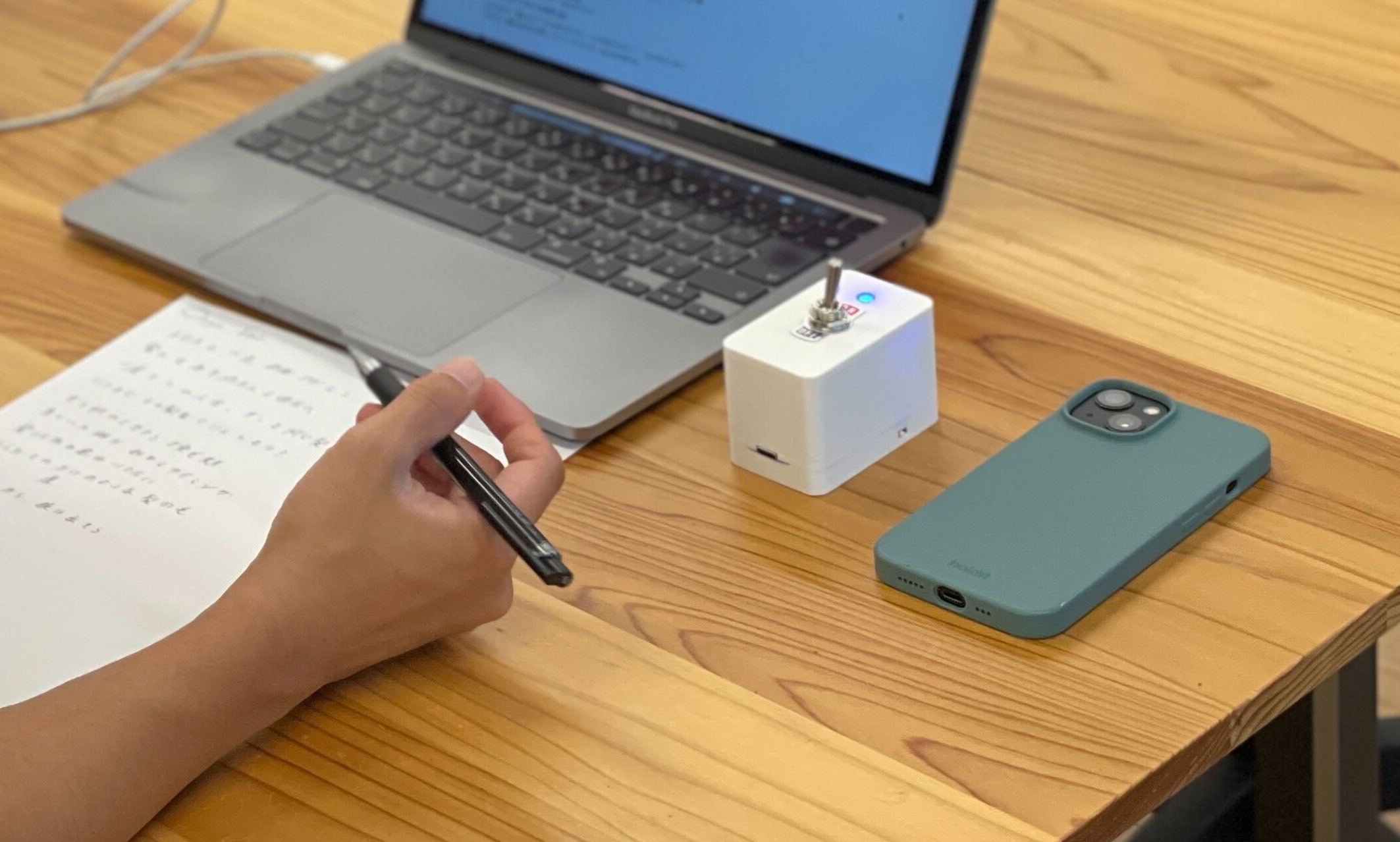 デバイスのスイッチが ON の場合、アプリを開こうとしても閉じる。OFFの場合はそのまま使うことができる。自分の意思を、スイッチ ON/OFF に表明することで、自分で自分の背中を押すことを目指す。単純に断ち切るのではないテクノロジーとの付き合い方を自分自身で探る。