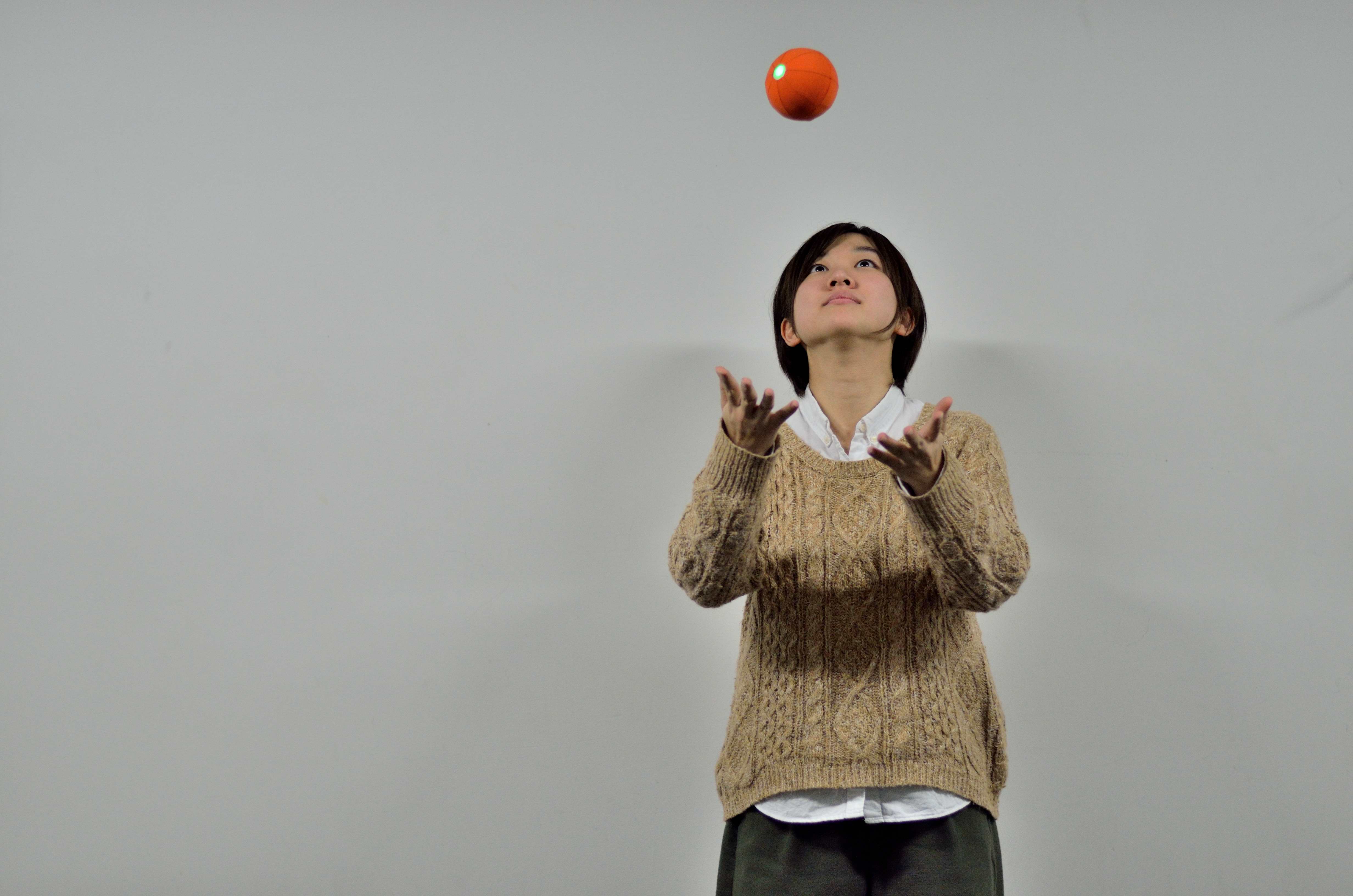 私たちは、球の自由さに着目しました。幼い頃には自分でルールを決めてボールを使っていたり、多くの球技を経験したりと、行動もルールも自分が主体となり自由に遊んでいました。そんな球を実際に使っている時の数値はどうなっているのだろう?と考え、開発にいたりました。