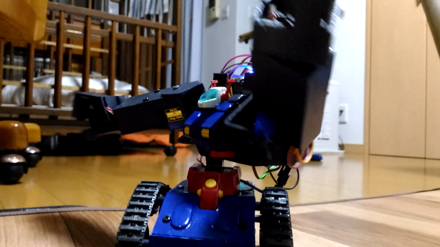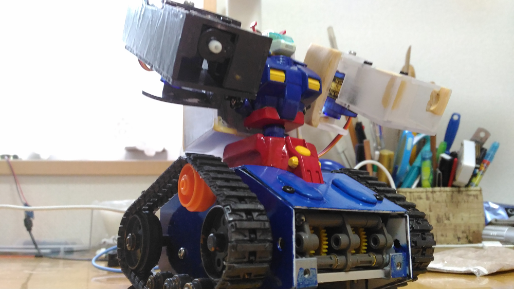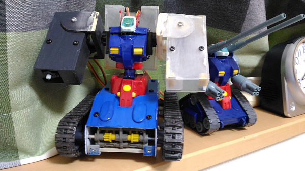 今回この作品を作ったのはプラモデルを動かして戦うというアニメにはまり、実際に自分も戦うことまではできなくてもプラモデルを動かして遊びたいと思ったことがはじまりです。最初はあまりマイコンや電子部品、プログラムの知識がない状態から作ったので完成までに数年かかってしまいましたがなんとか今年で完成しました。このロボットで使用したプラモデルは「HG ガンタンク」というキットを使用しました。なぜこのキットを選んだかというと「値段が安くかつ、ある程度大きい」と思ったからです。しかし実際にモーターやマイコン、バッテリーを載せるほど大きくなかったのでプラスチックやエポキシパテなどを材料にしてできるだけ作りやすく分解して修理しやすいようにかつ、できるだけ元になったキットのイメージから離れないように新しい部品を作っていきました。また無線リモコンもただ操縦するだけでなくロボットが起動するときにBGMが流れるようにもしてみました。