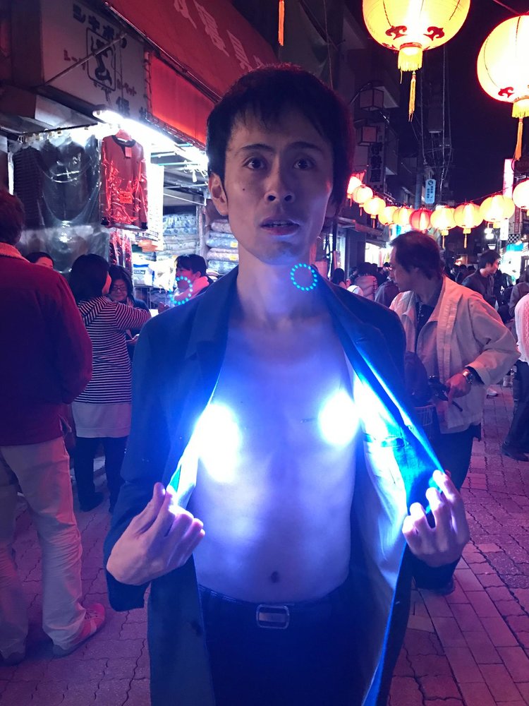 世界 70 億の潜在的ネオナチュリスト達に送る、局部を隠すことなく公然と人前に出られる新時代のウェア。 局部の周囲に装着する「閃光リング」により見る者の目を眩ませ、局部を露出していながら局部が見えないというブレイクスルーを実現した。