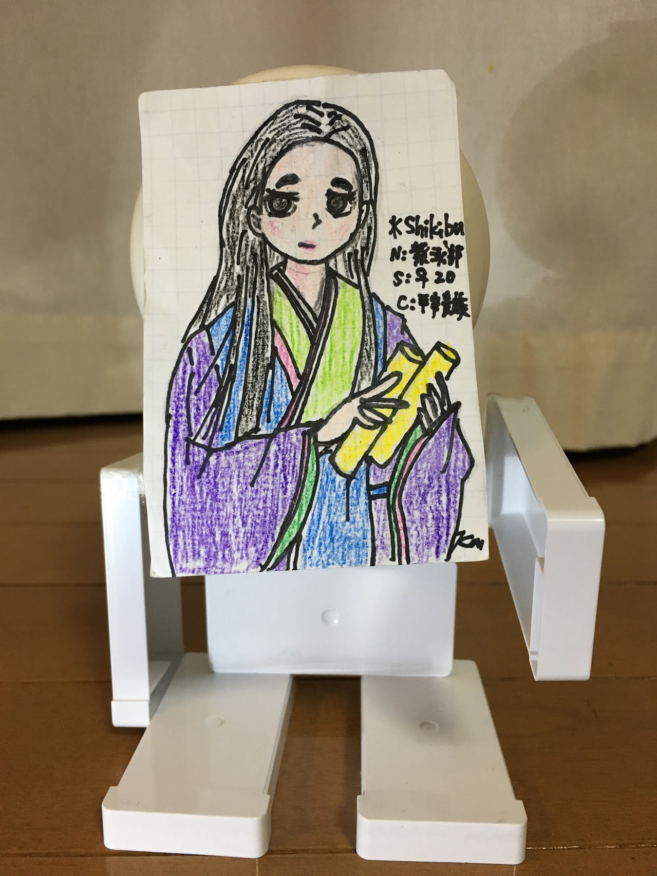 紫式部などを書いた紙にNFC、又はQRコードや識別子(シキブ)などをセットします。