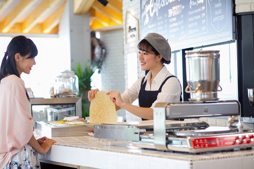 幅53cm×長さ96cm(収納時53cm)×高さ63cmと一般的なクレープ焼き機と同サイズのため、簡単に導入ができます。店舗はもちろん、さまざまなシーンで活躍します。