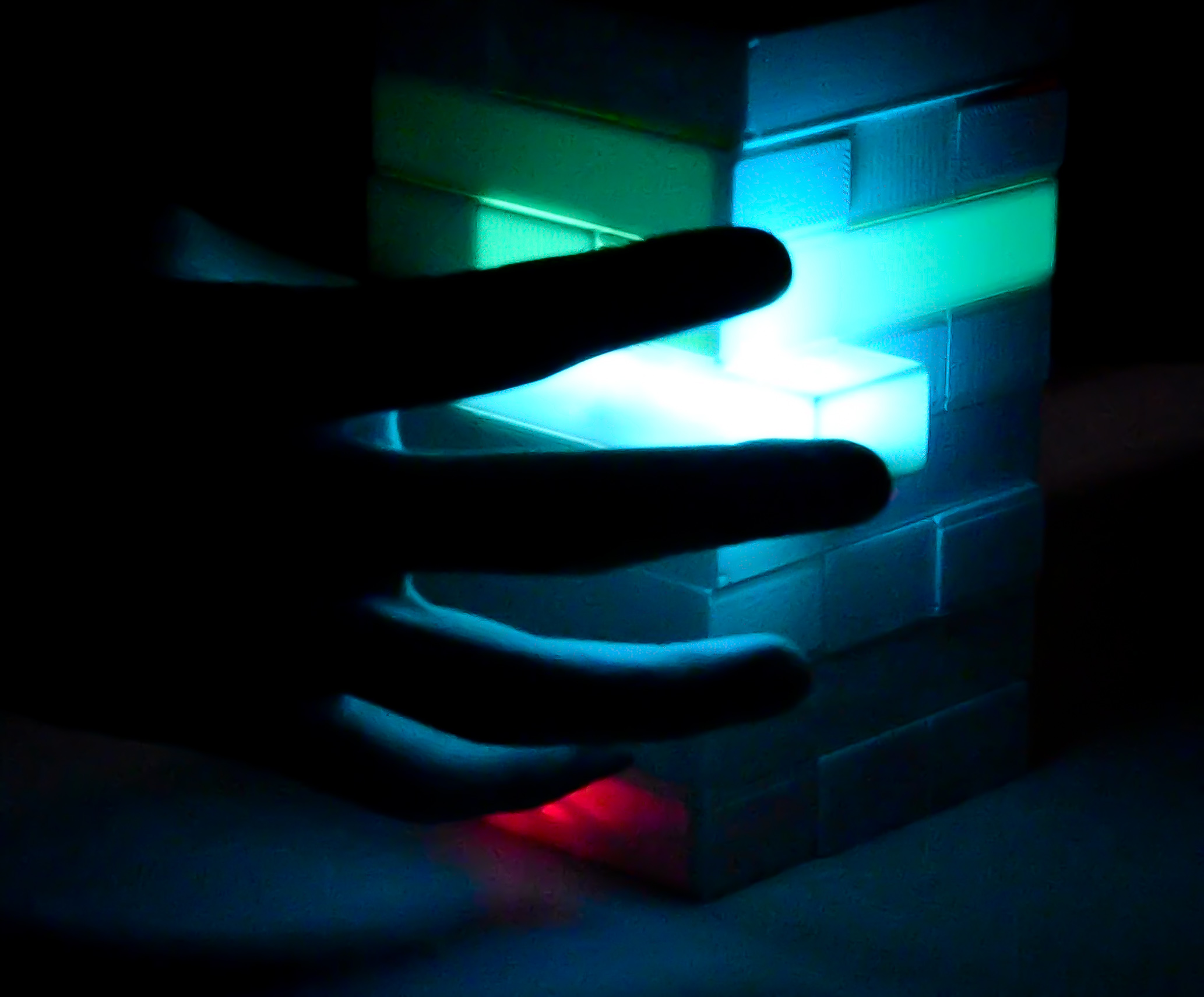 揺れないと見ることができない暗闇専用LEDジェンガ!