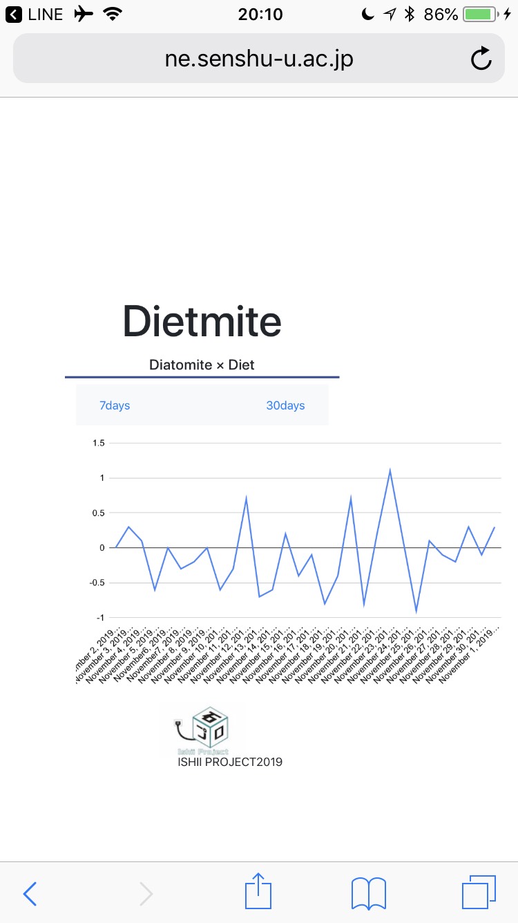 Googleスプレッドシートと連携し、自作WEBページから体重の変化のグラフを見ることができるようにしました。(お風呂から出た際の水分の重さは実験した結果100グラム程度であり、体重の変化に影響は出ません。)