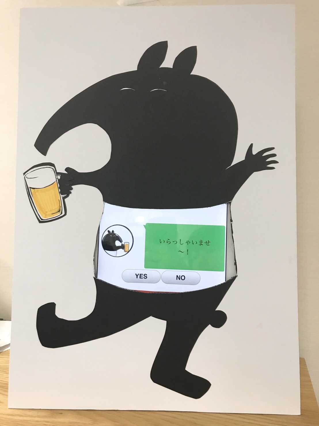 テーブルに設置されたバックンがお出迎えのあいさつをしてくれます。